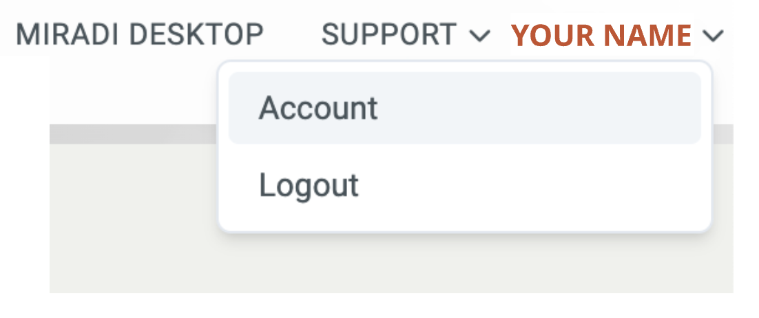 To view your project permissions, navigate to your Account page under your name in the upper right of the Miradi Share window.