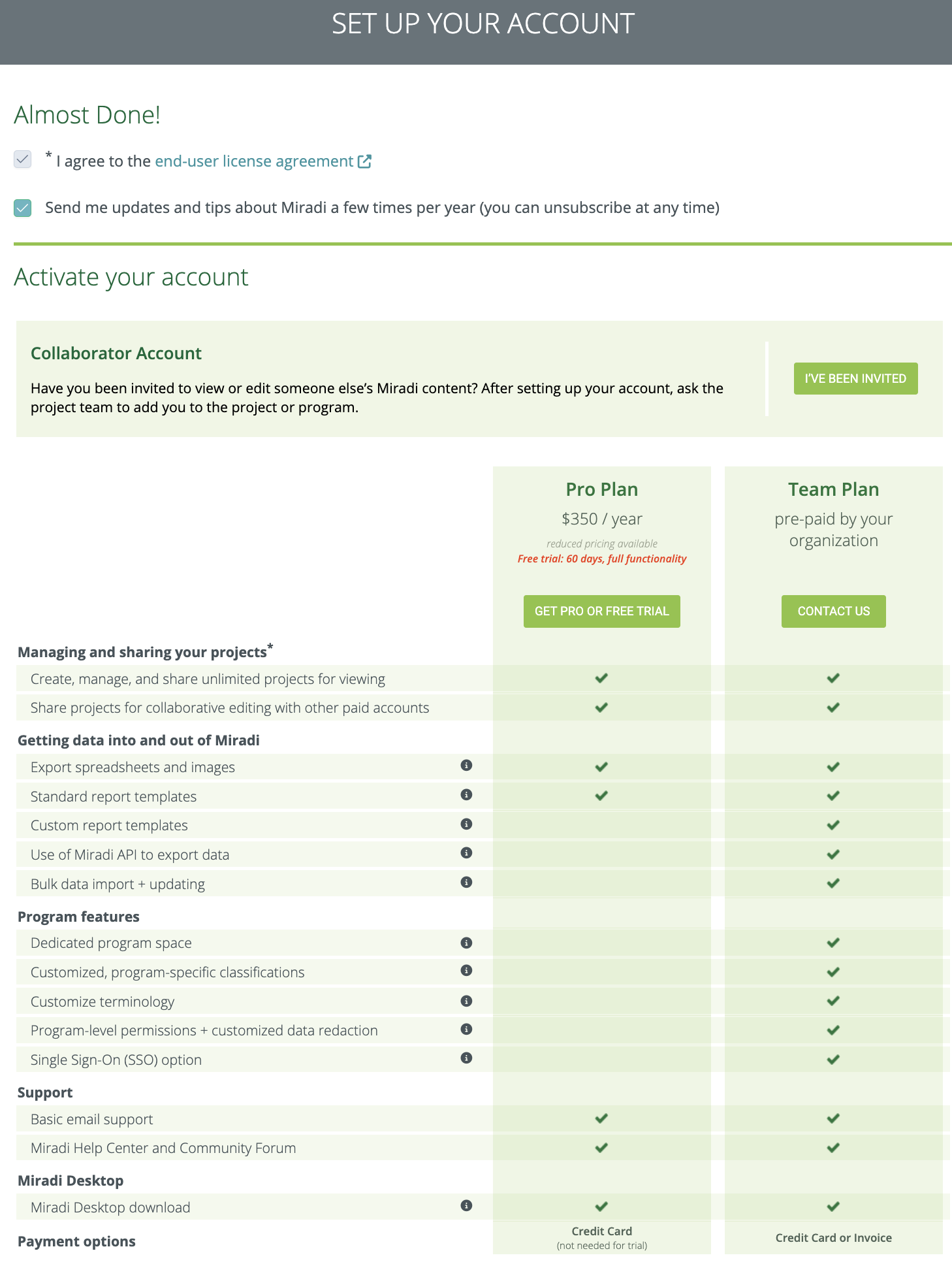 Create and set up your Miradi account