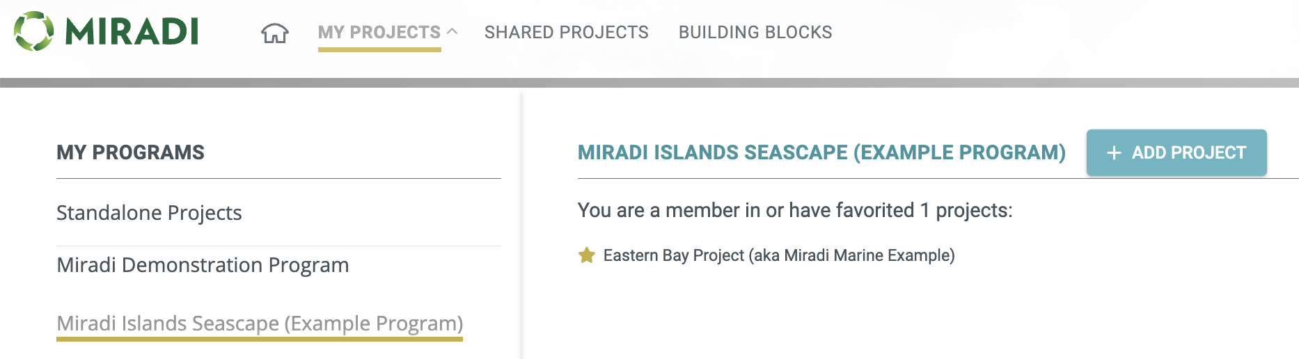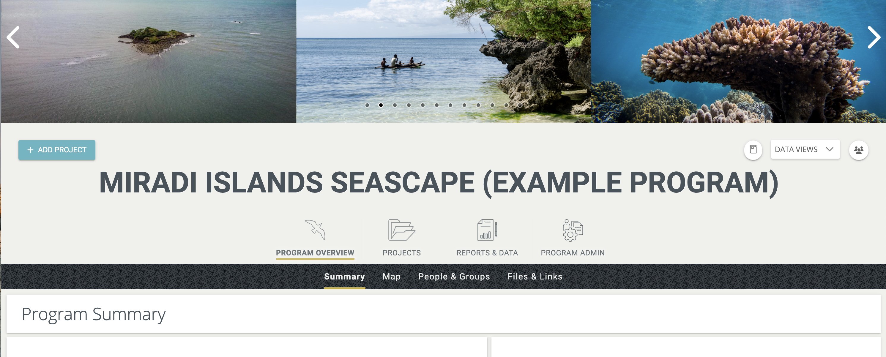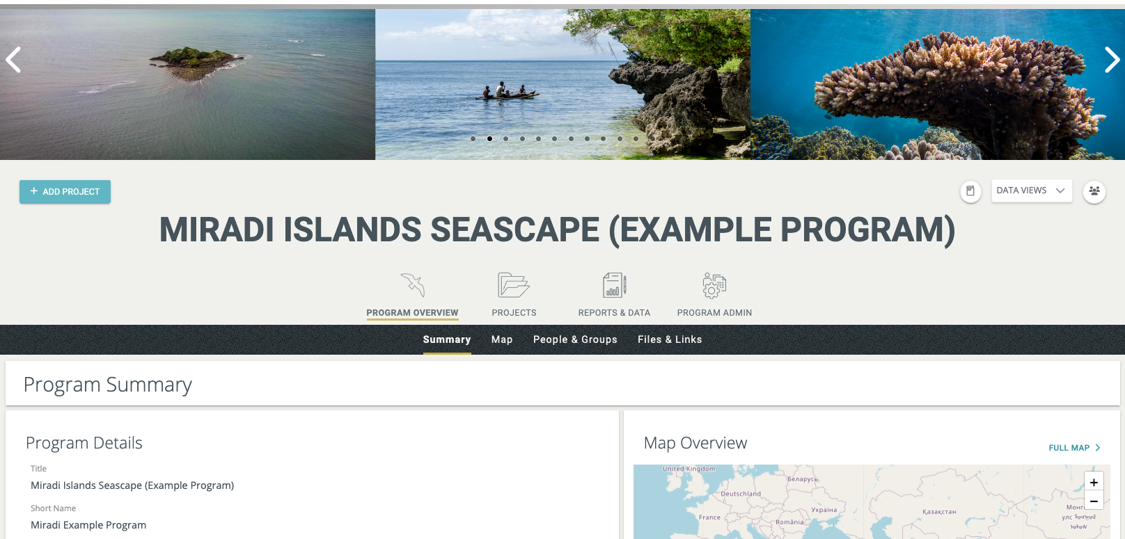 Click the “Program Summary” link to take you to the Program Overview page where you can manage all your Miradi projects at once. If you do not see your new program listed, please contact us.